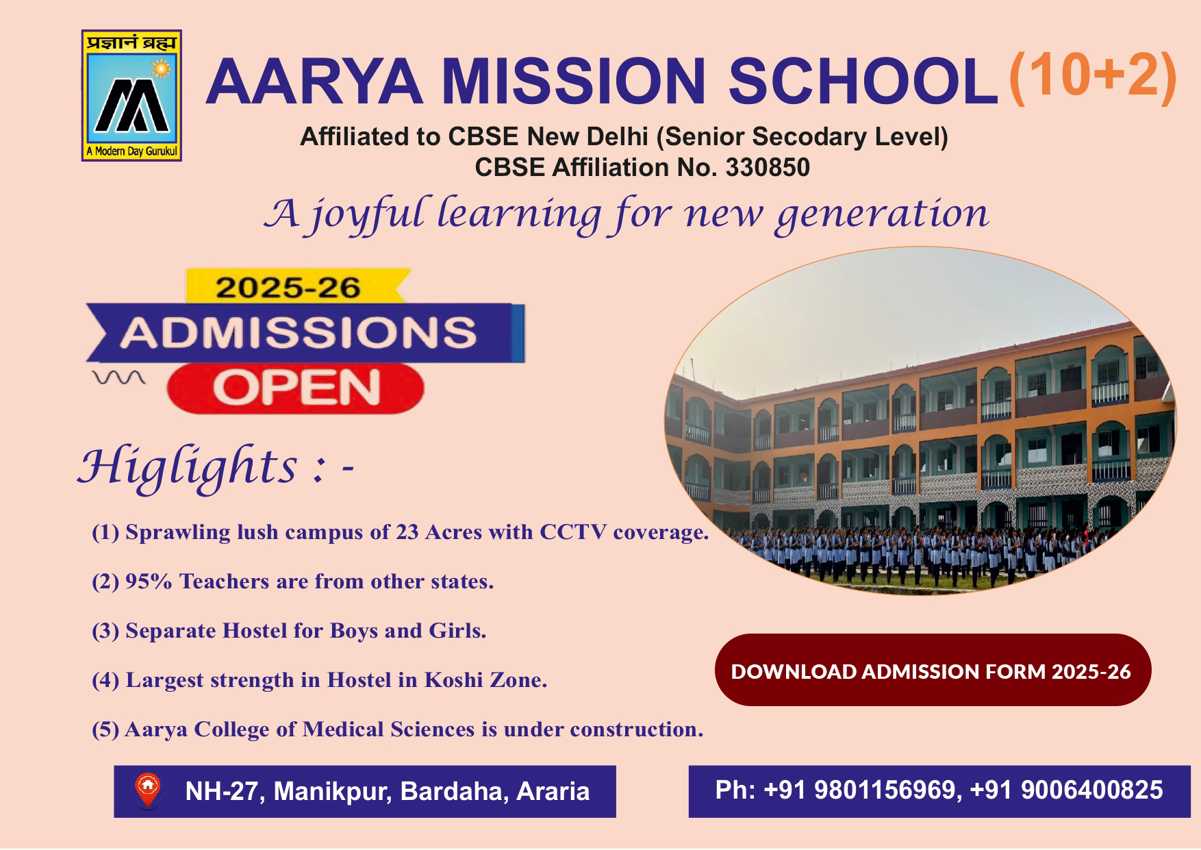 ParentAarya Mission School, it is not only the school it is my temple where I learnt many lesson of book and my life..... Thankyou for making me the part of AMS family.